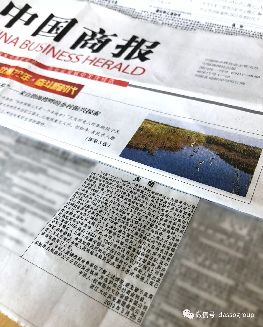 “大莊”“大庄”“ dasso”“高耐”系杭州新竹文化创意有限公司(以下简称杭州新竹)持有的在国家工商局注册的商标,“大莊”注册商标也是国家工商局认定的驰名商标:;作为全球竹运用推进者的形象,该品牌竹产品在全国范围和海外市场均拥有广泛的用户和良好的声誉:浙江大庄实业集团有限公司(以下简称大庄集团)与实际控制人及法定代表人为徐恒盛的上海大庄防腐材料有限公司及上海大庄实业有限公司(以下简称上海大庄)没有隶属关系和授权关系,同时申明人也未授权许可上海大庄使用上述商标。一段时间以来市场上发现上海大庄通过互联网及其他途径,使用申明人商标招揽业务,进行不正当的商业目的宣传;该上海大庄运营的网站故意突出使用“大庄”字样,并将大庄集团网站的“竹科技核心文化”作为自己的核心文化内容,借用项目工程作为自身项目宣传,虚假宣传和混淆的行为,严重侵犯了权利人的利益,误导消费者,扰乱市场公平竞争。对此,申明人申请立案多起诉诸法院,其中(2018)浙0109民初14831号、1940号判决书均已生效多时,判决书判令侵权人上海大庄赔偿损失,并在《中国知识产权报》上刊登申明,消除影响。现该生效的判决尚在强制执行中,申明人再次发现上海大庄侵犯申明人的商标及相关权益,情节恶劣,申明人现已诉诸法院并已立案。