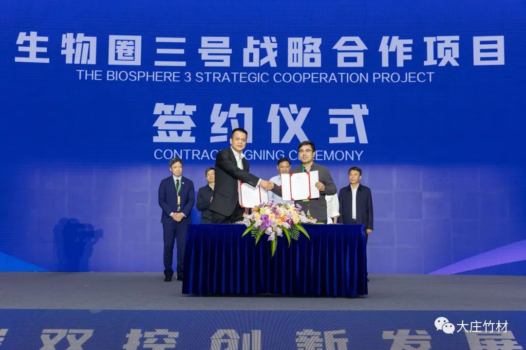 生物圈3号是一个集技术、智库、资源于一体的平台,构建碳中和的城市社区。2023年10月30号大庄与生物圈3号在2023碳双控创新发展国际论坛上建立战略合作,此次战略合作生物圈3号为大庄参加 COP28 打开了大门,即将展示竹子作为可持续资源在整个气候环境中起到的重大作用。