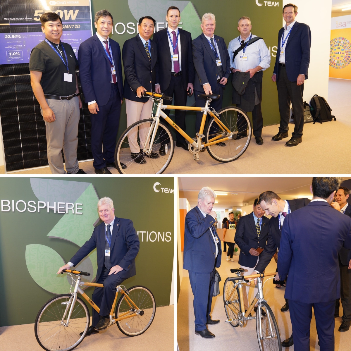 世界赛艇联合会主席,内河航道国际组织主席,气候现实团队负责人,三位领导人与大庄竹制自行车留下了珍贵的合影。他们惊叹地发现:“没想到竹子的应用居然如此广泛,甚至在马德里机场也能见到竹子的身影。” 在对气候问题的思考中,他们充满期待地谈到了竹子在未来的广泛应用。