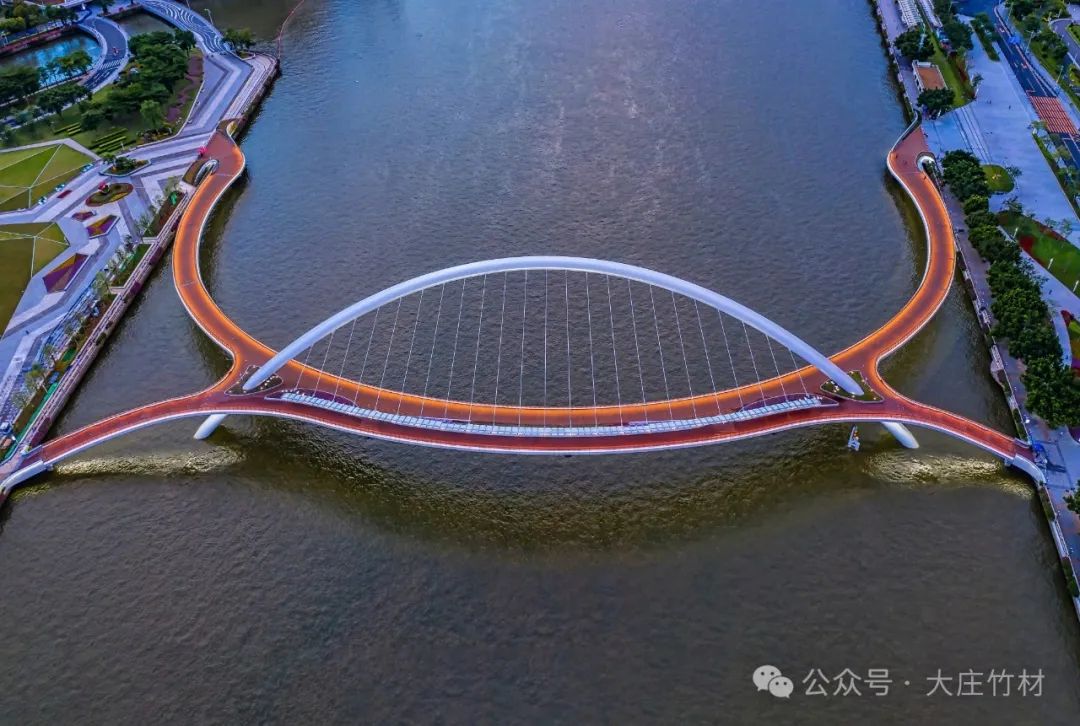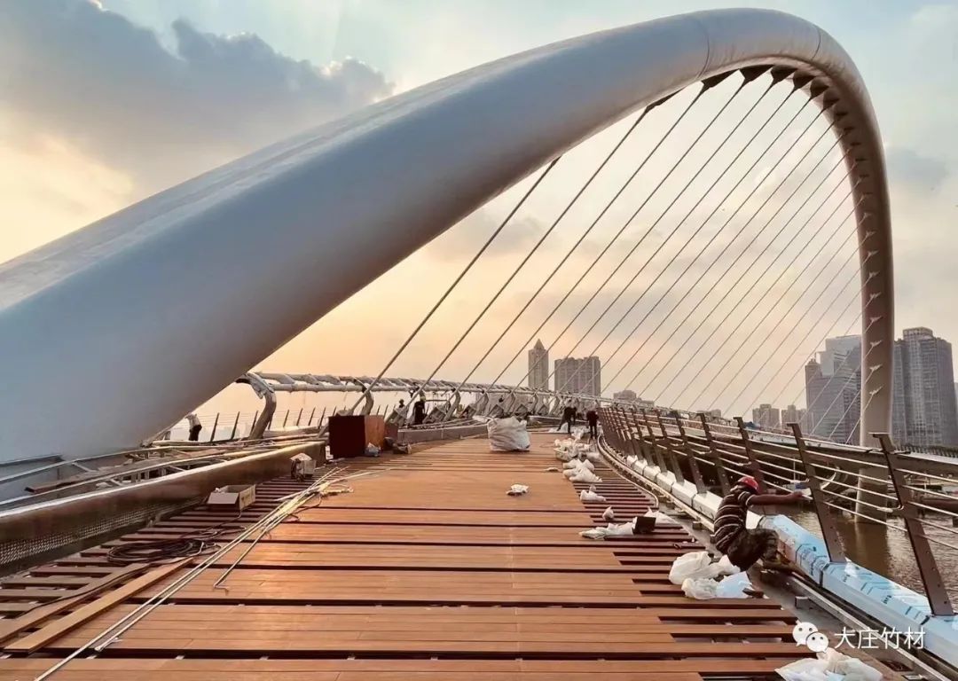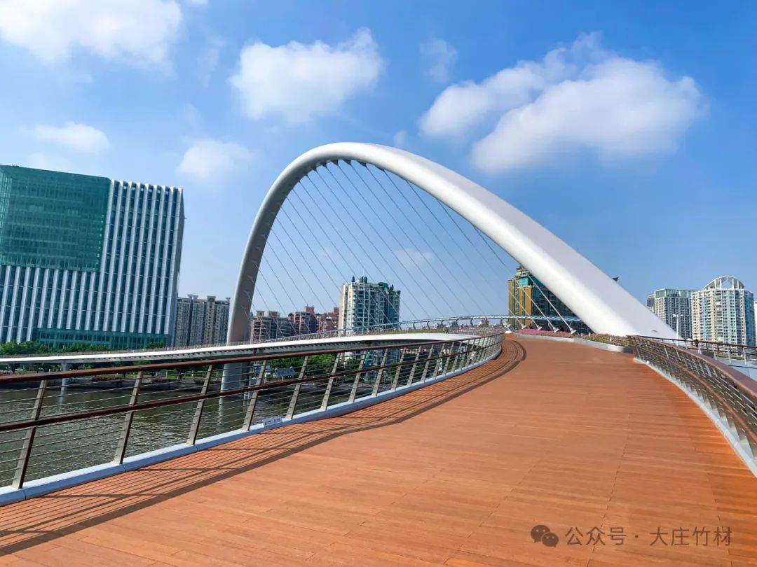 大庄户外竹材——瓷态,保留竹材天然独有的韧性,应用到海心桥上,为她的美丽增添一笔。