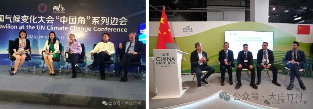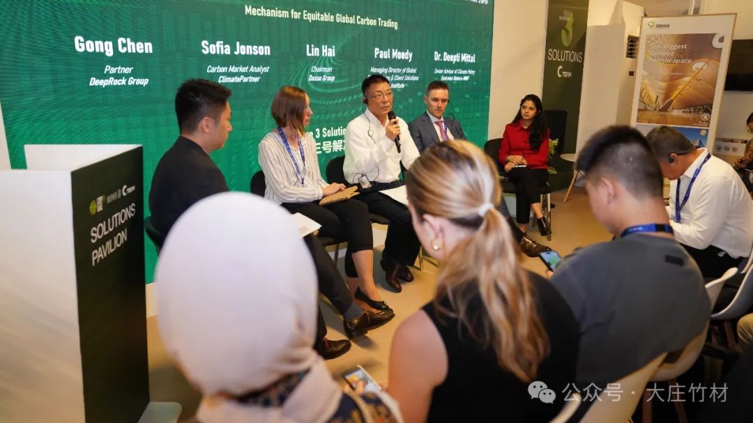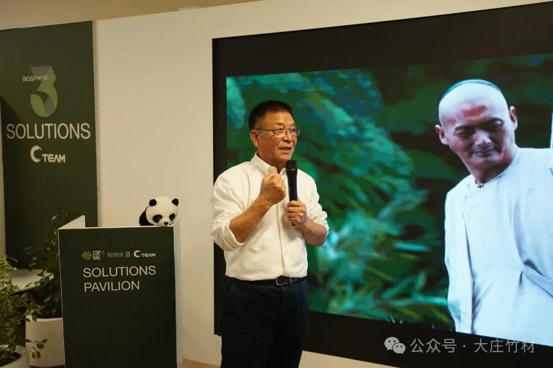 林海,大庄品牌创始人,中国林产工业终身成就奖获得者,资深竹子研究专家,十年前他带着竹子的故事参加利马COP20,十年后回到迪拜COP28,大会期间在中国角、生物圈三号解决方案馆、迪拜可持续城,林海走到哪里就把竹子——可持续的故事带到哪里,在“中阿绿色价值峰会”,他更是从可持续价值到文化价值,对竹子这种材料做了完整阐述,让竹子突然变得鲜活而具体。