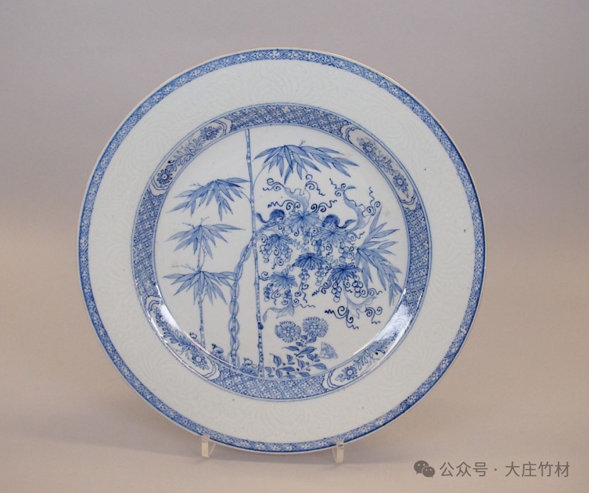美国大都会博物馆藏清代淡描青花竹纹盘,竹子作为文化使者已多年。