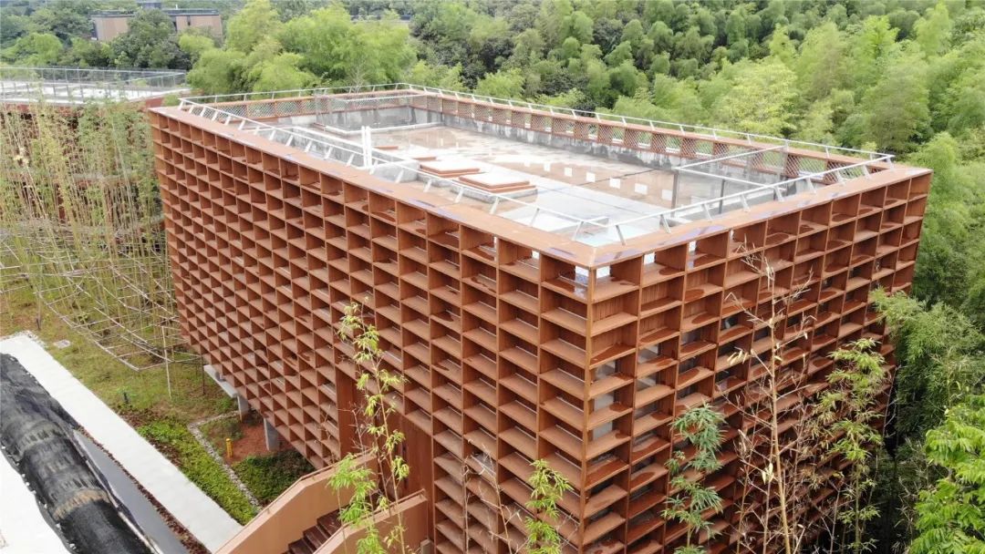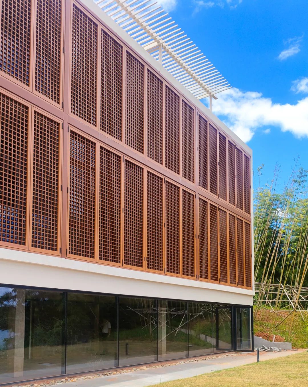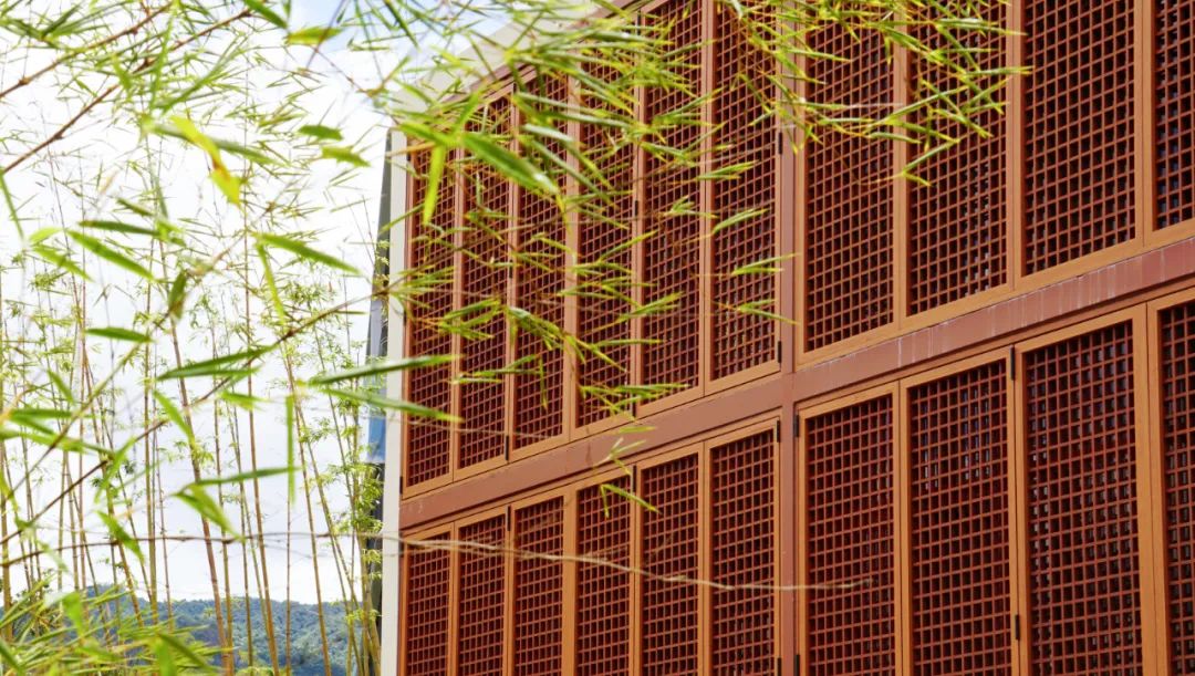 瓷态®格栅的建筑外皮,既可以保持建筑的生态友好性,宛如鸟巢一般保护着建筑内部的活动空间和私密性,同时又不会阻断内部向外欣赏的景观视线。