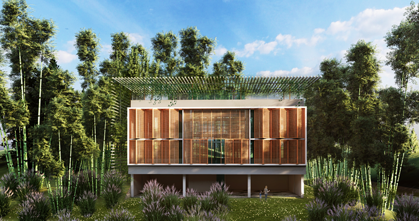 俞老师充分尊重场地条件与原始地形,依坡就势。并利用当地气候自然条件,通过架空、绿化墙体等改善微环境,与当地生态体系共存。对于人性化与体验感,俞老师同样十分注重,架空空间与周边景观的联动、创造亲水空间、错层楼板等空间设计手法,全面打造人性化、生态化、亲近自然的空间体验。